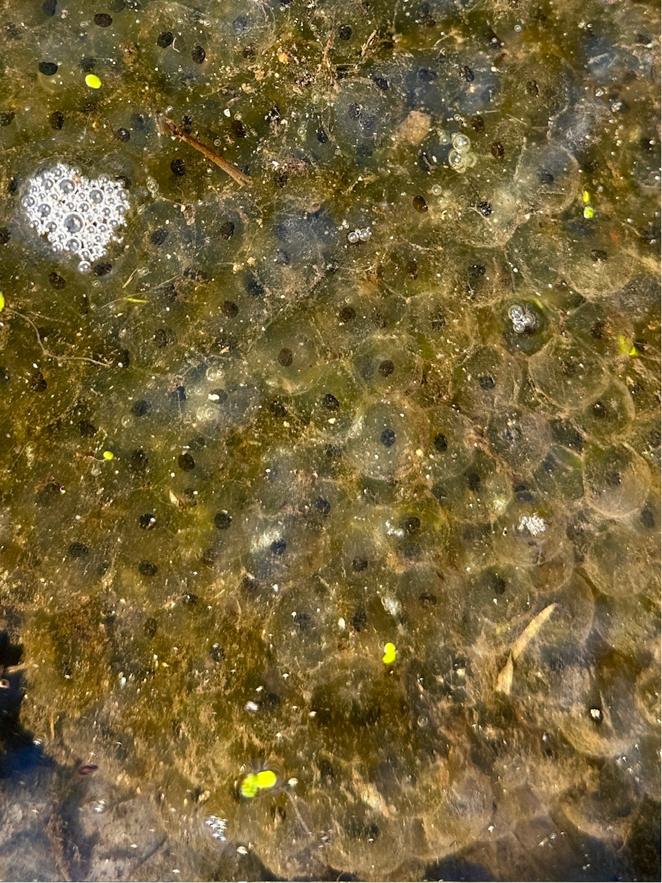 I disse dager foregår det noe fryktelig spennende i Froskedammen. Det som på avstand kan se ut som en samlet sky eller tåke av gjørme og skitt, er faktisk noe så spennende som en hel klynge av froskeegg...! Når man går nærmere ser man tydelig de små, sorte prikkene som snart blir til rumpetroll. Barna synes det er fryktelig gøy å følge med på, og det er mange som flokker seg om dammen både før og etter skolen, og i friminuttene. Vi gleder oss til det blir små rumpetroll som etterhvert får bein, mister halen sin og så til små frosker!