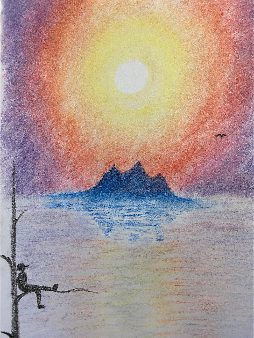 I 8. klasse jobber elevene fortrinnsvis med sort/hvitt, og hvordan å hente frem form og romfølelse ved hjelp av lys og skyggevirkninger. Det er ofte deilig for dem med et avbrekk med farger, og pastellkritt åpner opp for mange muligheter innenfor fagfeltet. Dette er en sniktitt inn i en øvelse hvor de lærer seg overganger og hvordan å hente frem landskap og stemninger.
